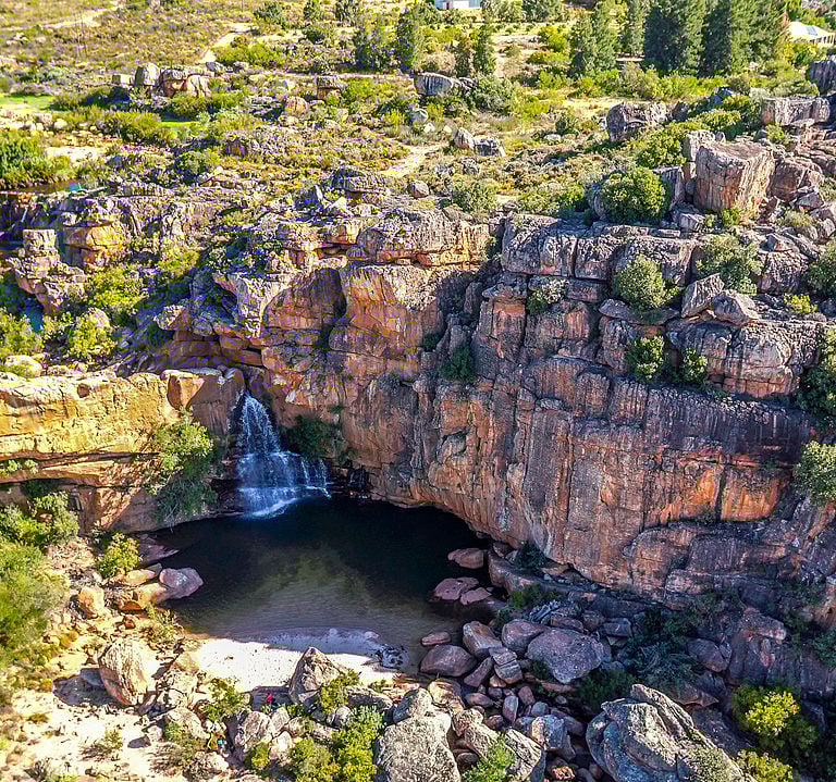 Embark on a journey through our protected rockland area, the heart of Waterfall Farm. Here, a majestic waterfall begins its descent, which has shaped the landscape over millions of years. Enjoy the serenity of natural pools and sensational potholes, perfect for a refreshing swim. Marvel at the large boulders framing the river, offering climbing opportunities for the adventurous souls.